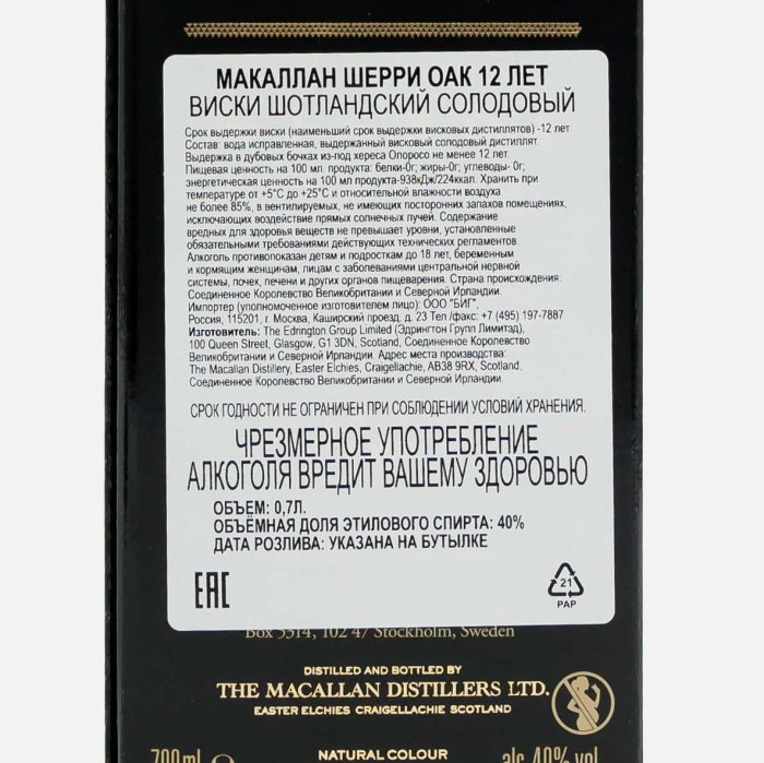 Виски Макаллан Шерри Ок 12лет шотланд односолод40% п/у 0,7л