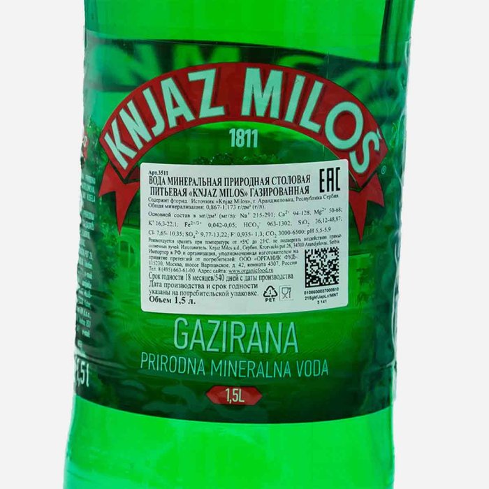 Вода Князь Милош минеральная природная газ пэт 1,5л