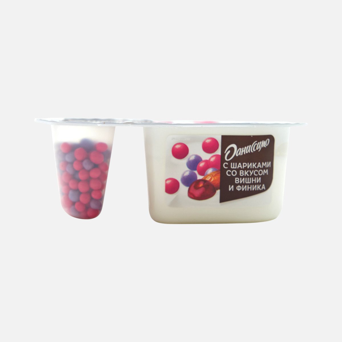 Йогурт Даниссимо Фантазия Хрустящие шарики вишня/финики 6.9% 105г