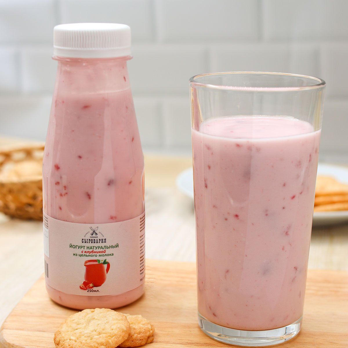 Для приготовления йогурта мы используем только цельное коровье молоко от лучших сибирских фермерских хозяйств. Добавляем натуральный клубничный джем, чтобы вам было еще вкуснее!