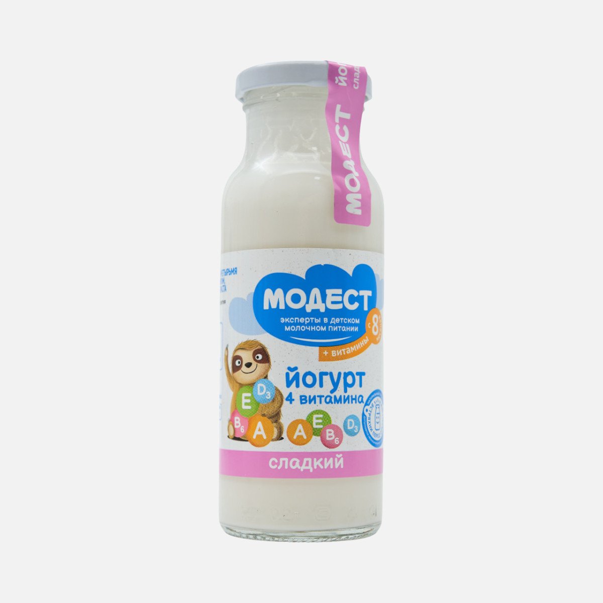 Йогурт Модест питьев с сахаром обогащ 4 витам с 8мес 3% ст/б 200г
