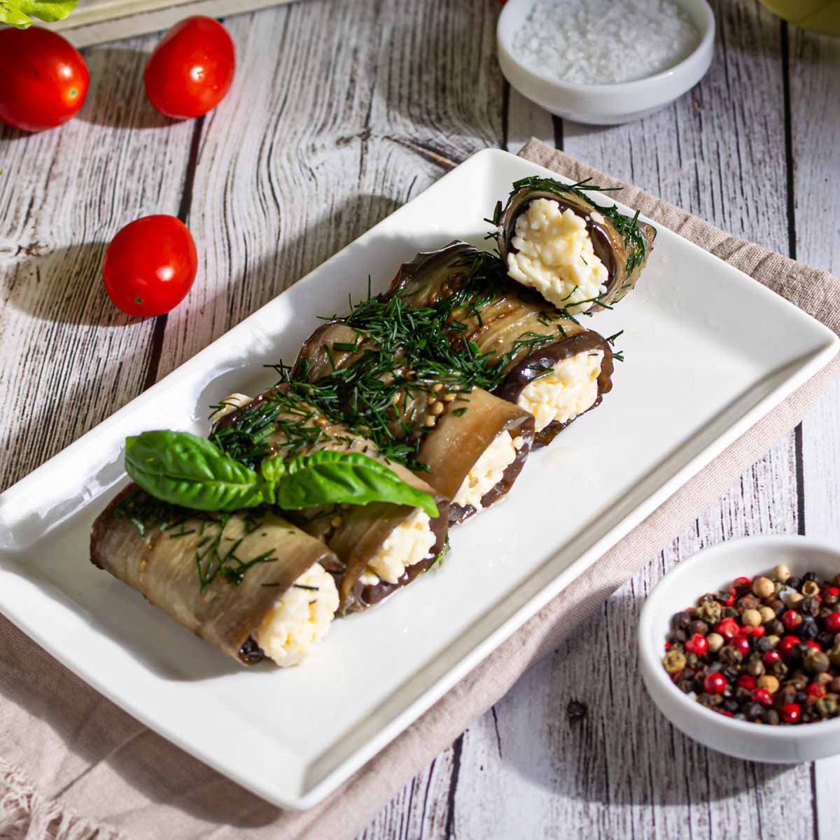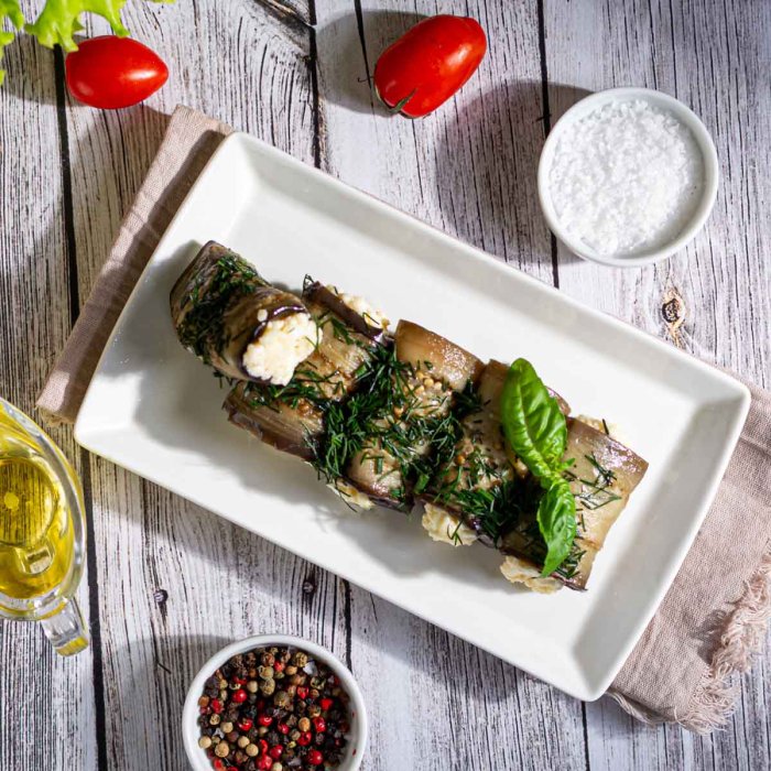Пикантные рулетики из баклажанов – сочная и нежная закуска с летним шлейфом. Дымный привкус жаренного баклажана в сочетании со сливочным сыром, майонезом, яйцами, чесноком и зеленью. Идеальный баланс хрустящей текстуры и кремовой начинки.