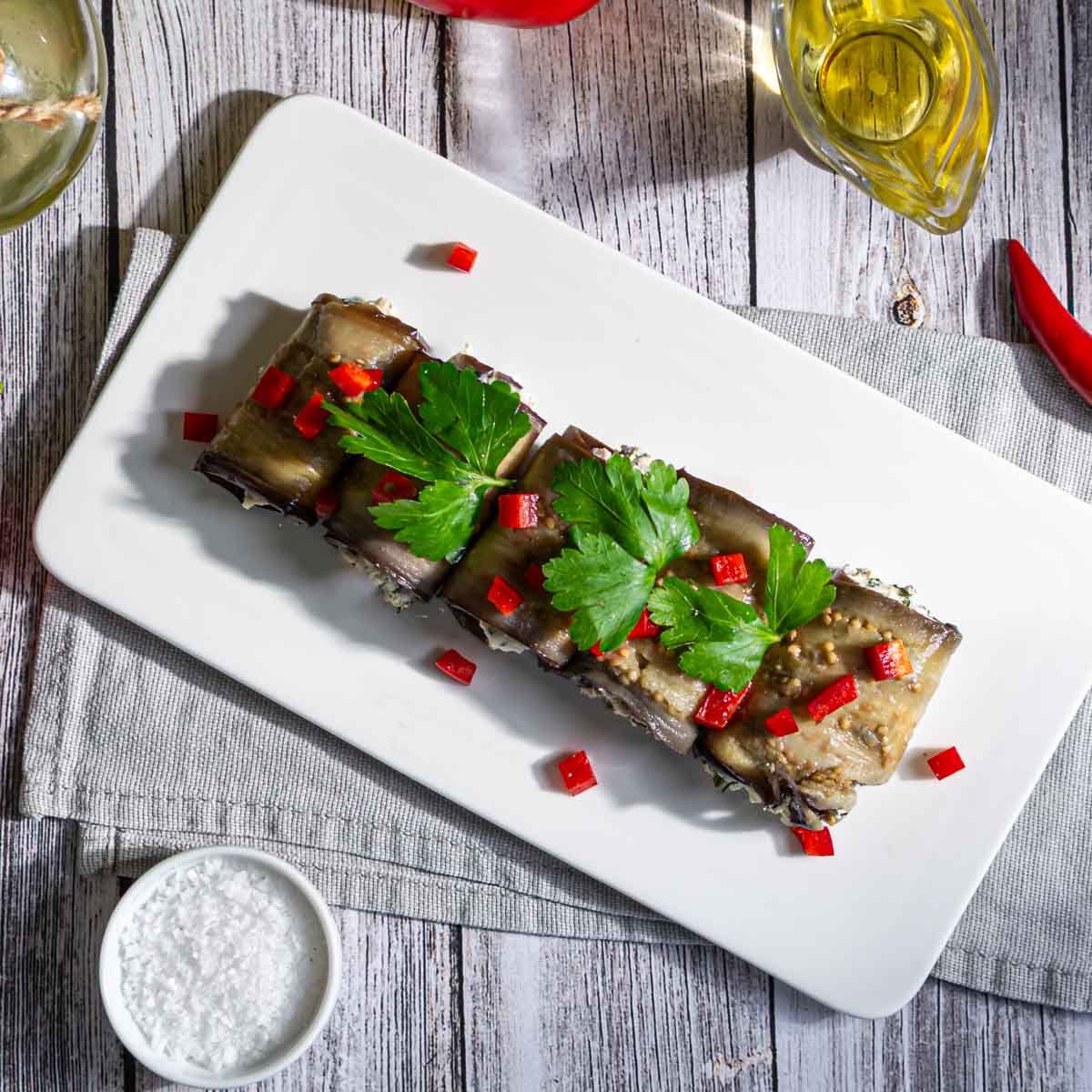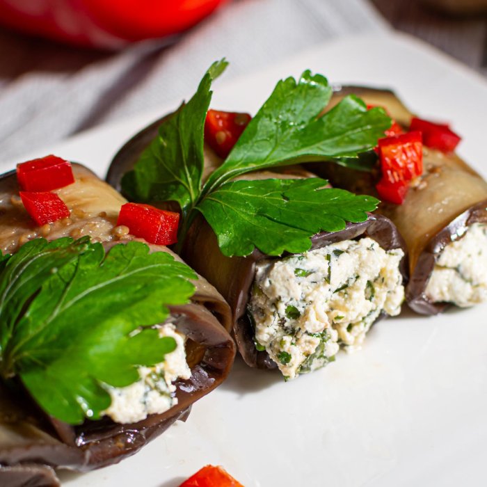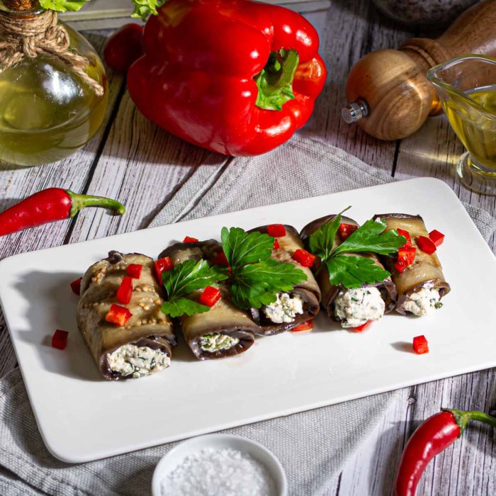 Закуска Рулетики из баклажанов с творожной начинкой вес