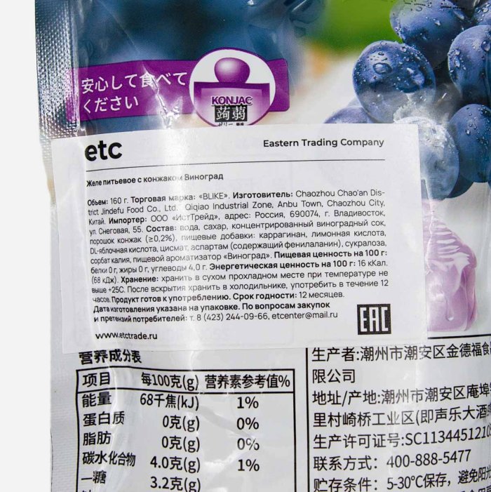 Желе Блайк с конжаком Виноград питьевое дой/пак 160г