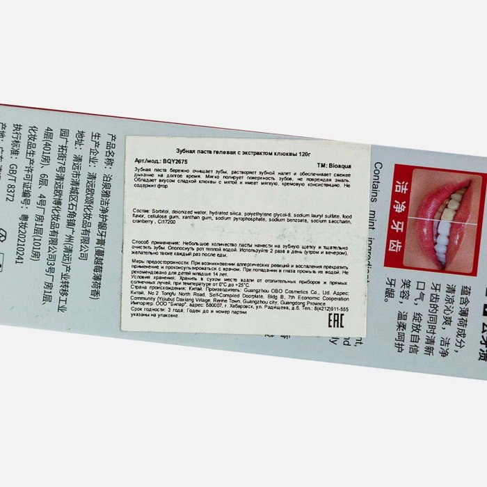 Зубная паста Биоаква гелевая с экстрактом клюквы к/к 120г