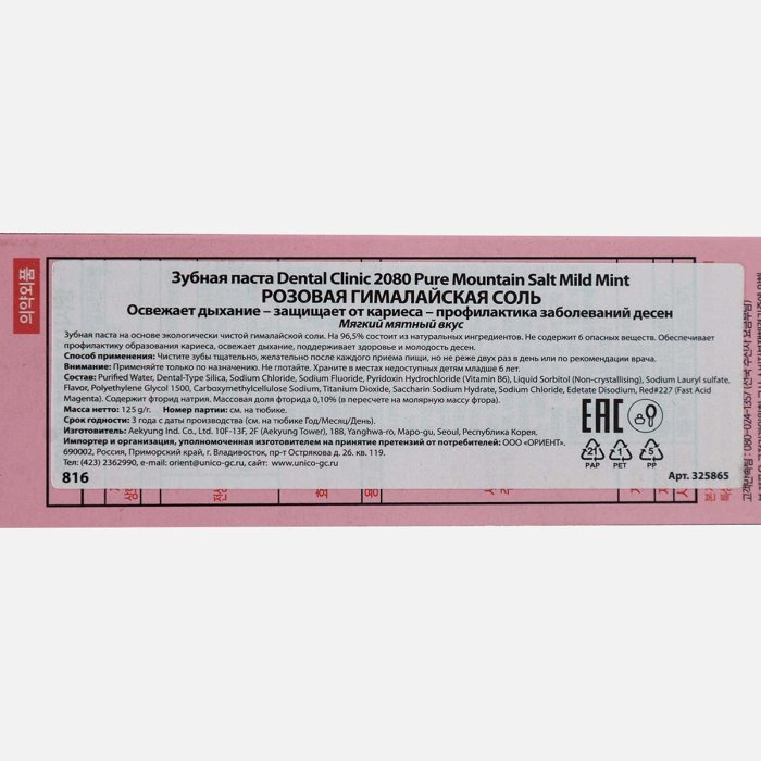 Зубная паста Дентал Клиник 2080 Розовая гималайская соль 120мл/125г