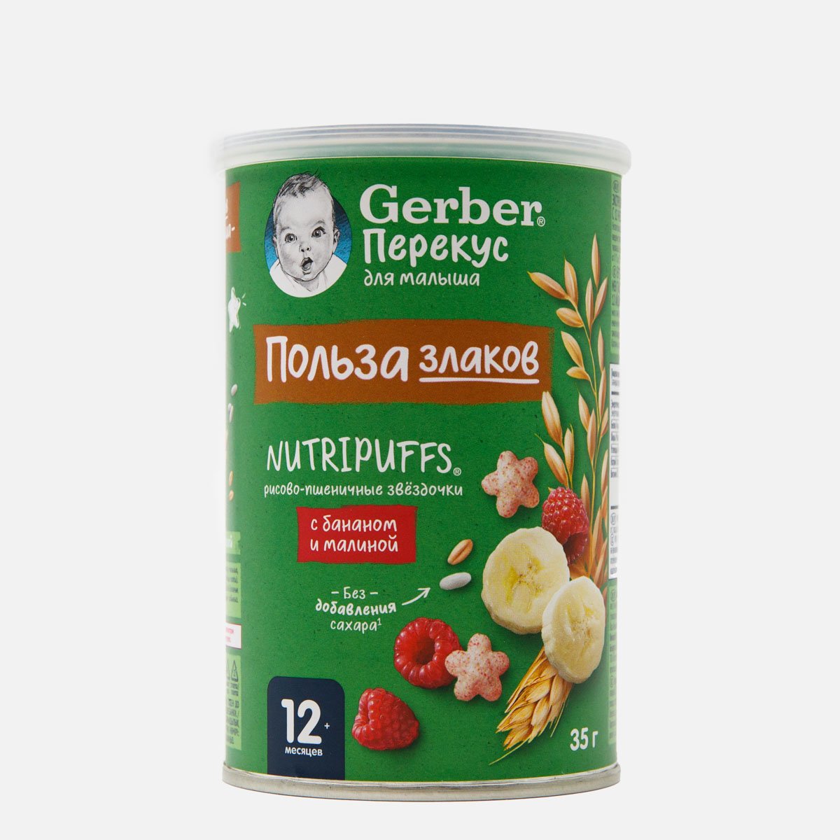 Звездочки Гербер Рисово-пшеничные с бананом/малиной с 12мес туба 35г